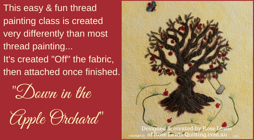 This easy & fun thread painting class is created very differently than most thread painting... It's created "Off" the fabric, then attached to your fabric once it's totally finished. This is a technique that I myself, created several years ago.