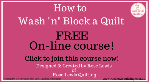 Ever wanted your quilt to sit or hang nice and flat, to really stand out in the crowd of quilts, now you can. I've been washing n blocking my quilts for years & I'm offering this totally Free, no strings attached on line course FREE for a short time.